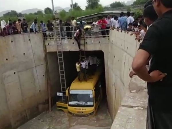 नई दिल्ली। राजस्थान के सीकर में उस समय एक बड़ा हादसा टल गया जब एक स्कूल बस पानी से भरे एक अंडरपास में फंस गई। इस दौरान बस में कई छात्र मौजूद थे। जैसे ही ये बस अंडरपास में फंसी छात्रों ने शोर मचाना शुरू कर दिया। शोरशराबे को सुनकर स्थानीय लोग मौके पर पहुंचे और उन्होंने बच्चों को बस से बाहर निकालने की कवायद शुरू की। उन्होंने सबसे पहले सभी बच्चों को बस की छत पर एकत्र किया और फिर इसके बाद उन्हें सीढ़ी के सहारे अंडरपास से बाहर निकाला।