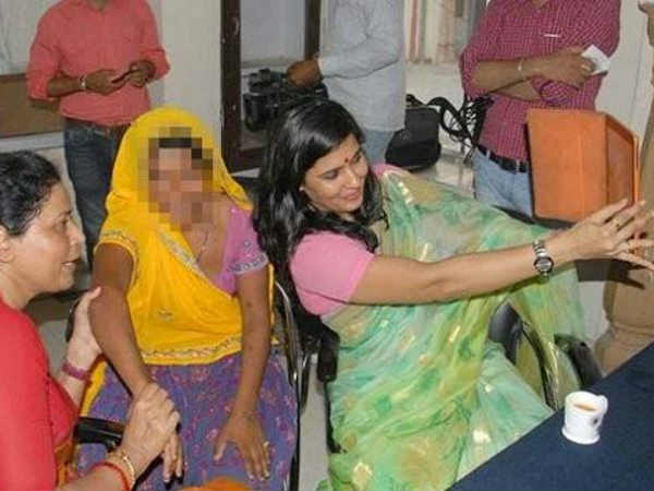 नयी दिल्ली (ब्यूरो)। राजस्थान के अलवर में पिछले हफ्ते एक सनसनीखेज वारदात सामने आई थी। खबर थी एक विवाहिता पर उसके ससुरालियों द्वारा किए गए जुल्मों की। जिसमें उसके साथ पति की शह पर गैंगरेप करते हुए उसके हाथ और माथे पर लिख दिया गया था 'मेरा बाप चोर है।' एक तरफ जहां उसे इंसाफ का इंतजार है वहीं दूसरी तरफ उससे मिलने पहुंची राजस्थान महिला आयोग की अध्यक्षा ने कुछ ऐसा किया जिससे ऐसा लगा कि पीडि़ता कोई नुमाइश की चीज हो।