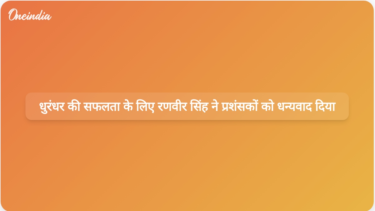 बॉलीवुड अभिनेता रणवीर सिंह ने अपनी फिल्म "धुरंधर" की सफलता के लिए दुनिया भर के दर्शकों का आभार व्यक्त किया, और इसके बॉक्स ऑफिस की शानदार सफलता का श्रेय उनके प्यार और सम्मान को दिया। दिसंबर 2025 में रिलीज़ हुई इस फिल्म ने भारतीय बाज़ार से 1,000 करोड़ रुपये के साथ, वैश्विक स्तर पर 1,300 करोड़ रुपये का कलेक्शन किया। आदित्य धर द्वारा निर्देशित इस स्पाई थ्रिलर को इसकी कहानी, संगीत और प्रदर्शन के लिए सराहा गया।