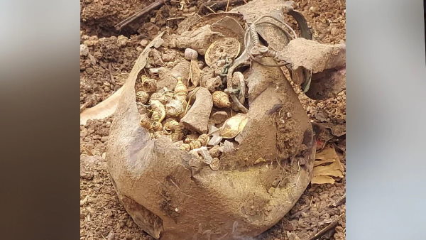हैदराबाद। तेलंगाना में एक बिल्डर को खुदाई के दौरान करोड़ों रुपए कीमत के सोने और चांदी के आभूषण मिले हैं। तेलंगाना के जनगांव जिले के पेमबर्थी में एक बिल्डर को गुरुवार को सोने से भरा एक बर्तन मिला। बिल्डर नरसिम्हा पेमबर्थी में अपनी बंजर पड़ी भूमि को समतल कर रहे थे। तभी उन्हें 5 किलो सोने चांदी से भरा एक बर्तन मिला। इस घटना की जानकारी मिलते ही उसके जमीन पर लोगों की भीड़ लग गई।