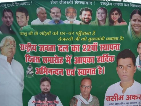 नई दिल्ली। लालू प्रसाद यादव की आरजेडी का आज स्थापना दिवस है, इसके लिए पार्टी तैयारियां जोरों पर कर रही है और पार्टी के समर्थकों में इसे लेकर जबरदस्त उत्साह है। स्थापना दिवस से पहले पार्टी कार्यालय के बाहर एक पोस्टर लगा है जिसको लेकर सियासी सरगर्मी तेज हो गई है। दरअसल घर के बाहर एक पोस्टर लगा है जिसमें लालू प्रसाद यादव की बहू ऐश्वर्या नजर आ रही है, लिहाजा सवाल यह उठने लगा है कि क्या लालू की बहू अब राजनीति में कदम रखने जा रही हैं।