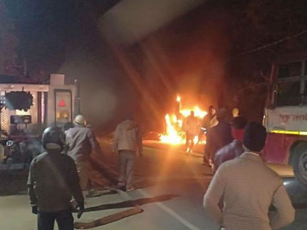 बुलंदशहर। तेज रफ्तार रोडवेज बस ने ट्यूशन पढ़कर आ रहे तीन छात्रों को कुलचकर मार डाला, जिसके बाद स्थानीय लोगों ने वहां हंगामा बरपा दिया। लोगों ने केवल बस को आग के हवाले कर दिया बल्कि कई वाहनों में तोड़फोड़ की। स्थानील लोगों वे बुलंदशहर- शिकारपुर स्टेट हाइवे को जाम कर दिया।