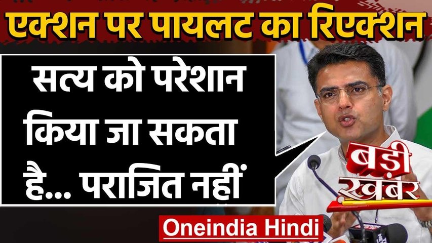 जयपुर। कांग्रेस ने बागी नेता सचिन पायलट पर कार्रवाई करते हुए उन्हें सभी पदों से बर्खास्त कर दिया है। दिल्ली से जयपुर गए रणदीप सुरजेवाला ने पायलट को हटाने का ऐलान किया। उनकी जगह पर ओबीसी नेता गोविंद सिंह डोटासरा को प्रदेश कांग्रेस का अध्यक्ष बनाया गया है। इसी बीच पूरे घटनाक्रम पर सचिन पायलट ने चुप्पी तोड़ी है। कांग्रेस से निकाले जाने के बाद सचिन ने ट्विट कर लिखा कि, सत्य को परेशान किया जा सकता है पराजित नहीं।
