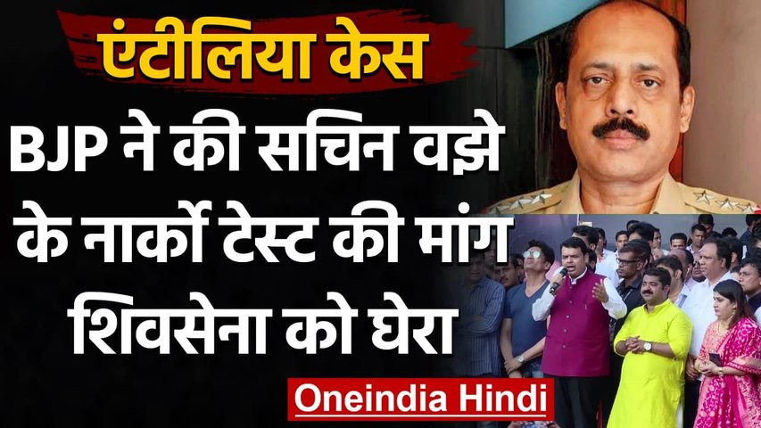 वहीं बीजेपी ने शिवसेना पर हमला बोलते हुए वाजे का नार्को टेस्ट कराए जाने की बात कही है। महाराष्ट्र में भारतीय जनता पार्टी के वरिष्ठ नेता राम कदम ने ट्विट कर कहा कि आखिरकार सचिन वाजे को एनआईए ने गिरफ्तार कर ही लिया। क्या अब सचिन वाजे को बचाने का कुकर्म करने वाली शिवसेना की सरकार देश से माफी मांगते हुए सचिन वाजे का नार्को टेस्ट करेगी? उन्होंने आगे कहा कि हमारी मांग है सचिन वाजे का नार्को टेस्ट कराया जाए जिससे पता चले कि महाराष्ट्र सरकार उसे बचाना क्यों चाहती थी?