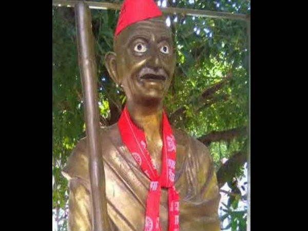 यूपी में महात्मा गांधी का अपमान, पहनाई समाजवादी टोपी और दुपट्टा