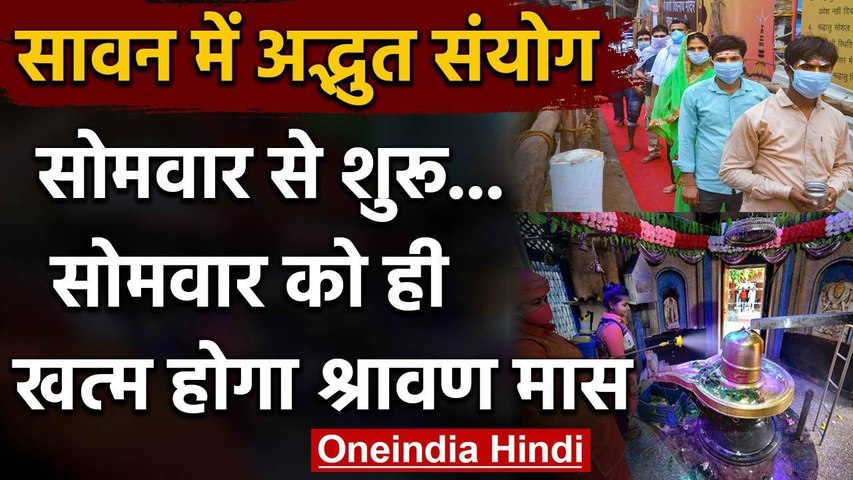शिव के प्रिय महीने सावन की शुरुआत आज से हो गई है , इसका समापन 3 अगस्त को होगा, इस बार सावन में 5 सोमवार पड़ने वाले हैं, साथ ही इस बार के सावन में विशेष संयोग भी बन रहा है, दरअसल इस महीने जिस दिन सावन शुरू हो रहा है, उस दिन भी सोमवार है और जिस दिन खत्म हो रहा है, उस दिन भी सोमवार ही है, इसलिए धार्मिक दृष्टिकोण से इसे बहुत अच्छा संयोग माना जा रहा है, इस बार सावन मास में 5 सोमवार पड़ने वाले हैं।