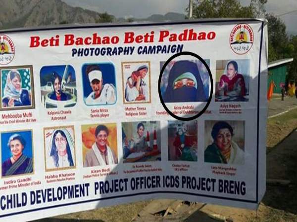 बेटी बचाओ, बेटी पढ़ाओ के पोस्टर पर लगाई अलगाववादी आसिया अंद्राबी की फोटो, इस के पीछे जो भी अफसर है उस पर कार्रवाई की जाएगी