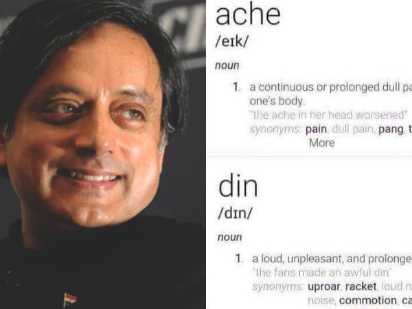 थरुर ने स्क्रीनशॉट शेयर कर दिखाया है कि गूगल अच्छे का का अर्थ शरीर के एक हिस्से में निरंतर और लंबे समय रहने वाला दर्द जबकि दिन की मतलब एक तेज, अप्रिय शोर है। अच्छे दिन के इस अर्थ पर फेसबुक यूजर भी खूब कमेंट कर रहे हैं।