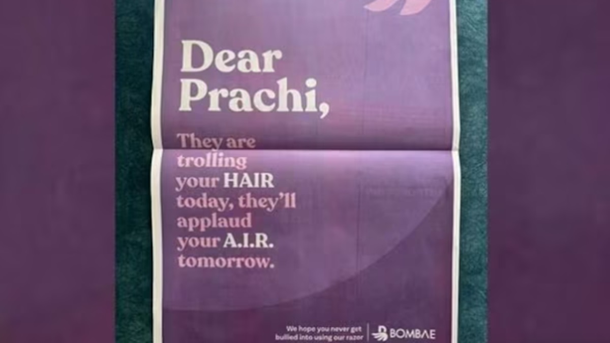विज्ञापन में प्राची निगम के पक्ष में लिखा गया है कि डियर प्राची ये आपको आज बाल की वजह से ट्रोल कर रहे हैं, कल ये ऑल इंडिया रैंकिंग की वजह से आपकी तारीफ भी करेंगे। लेकिन विज्ञापन की जो आखिरी लाइन है उसको लेकर तीखी प्रतिक्रिया सामने आई है। विज्ञापन के अंत में लिखा है कि हम आशा करते हैं कि हमारा रेजर इस्तेमाल करने के बाद आपको कोई बुली ना करेगा।