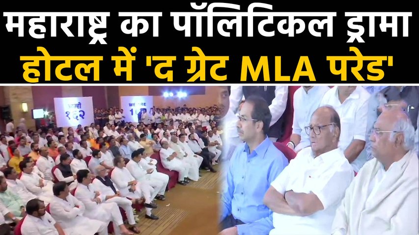 मुंबई। महाराष्ट्र में चल रही सियासी उठापटक के बीच शिवसेना, एनसीपी और कांग्रेस अपने विधायकों की परेड ग्रैंड हयात होटल में कराई गयी। इस बैठक में तीनों पार्टियों की ओर से दावा किया गया कि, उनके पास 162 विधायकों का बहुमत है। इसके साथ ही उद्धव ठाकरे ने दावा किया है कि, हम महाराष्ट्र में अगली सरकार बना रहे है। इसके साथ ही इस बैठक में कांग्रेस, एनसीपी और शिवसेना के कई बड़े नेता मौजूद हैं। आए हम आपको बताते हैं इस महापरेड की बड़ी बातें...