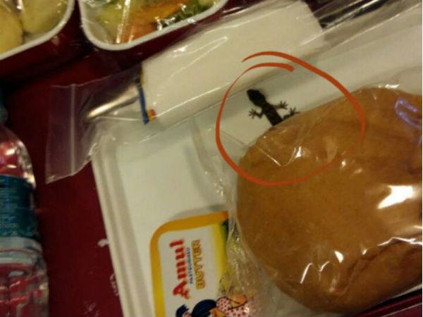 गुरुवार को यह मामला उस वक्त सामने आया जब एक यात्री ने खाने में छिपकली होने की शिकायत की। हालांकि क्रू मेंबर ने खाने को बदल दिया लेकिन यात्री ने इसकी शिकायत एयर इंडिया से की है। लेकिन अभी तक इस मामले में कोई भी कार्यवाही नहीं की गयी है।