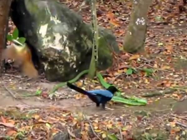 सांप से खतरा महसूस होते ही इस चिड़िया ने उसके ऊपर हमला बोल दिया, चिड़िया ने अपनी चोंचे से सांप के ऊपर कई वार किए।