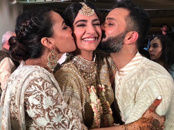 सोनम कपूर की कलीरें अर्जुन कपूर की बहन अंशुला ने बांधीं थीं और अंत में कलीरें उन्हीं पर गिरीं।