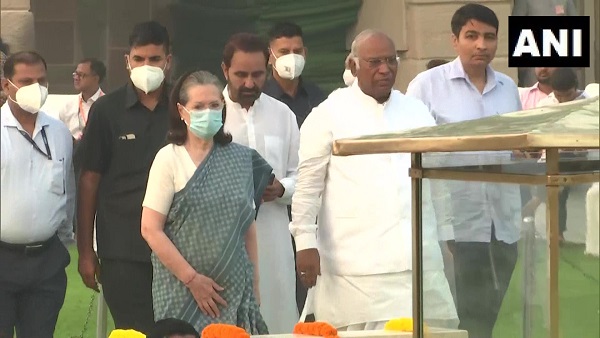 गांधी जंयती: सोनिया गांधी-मल्लिकार्जुन खड़गे पहुंचे राजघाट, बापू को दी श्रद्धांजलि
