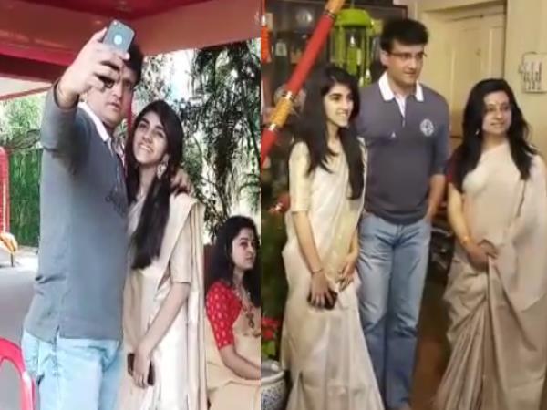 VIDEO: 'दादा' ने परिवार के साथ की मां सरस्वती की पूजा, बेटी सना ने सिखाया अच्छी सेल्फी लेने का तरीका