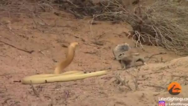 अपने बच्चे के लिए कोबरा से भिड़ गई गिलहरी, वीडियो वायरल