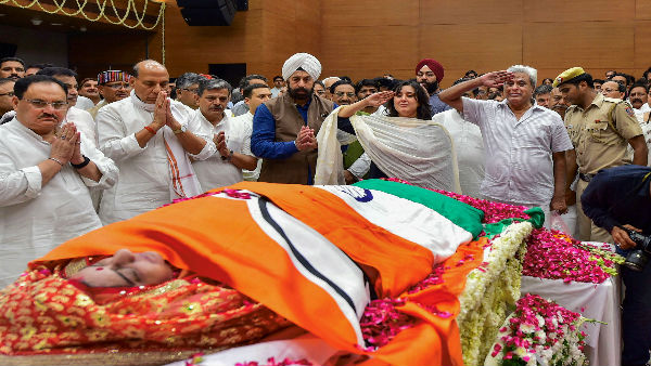 बीजेपी मुख्यालय से लोधी रोड स्थित शवदाह ले जाने के दौरान केंद्रीय मंत्री राजनाथ सिंह, बीजेपी के कार्यकारी अध्यक्ष जेपी नड्डा, पीयूष गोयल, रविशंकर प्रसाद समेत कई बीजेपी नेताओं ने कंधा दिया। वहीं अमित शाह और जेपी नड्डा ने उनके पार्थिव शरीर पर BJP का झंडा रखा।
