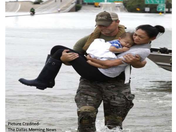 इस तस्वीर में रेस्क्यू के दौरान स्वाट का एक ऑफिसर तूफानी बाढ़ से एक महिला और उसके 13 महीने के बेबी को सुरक्षित बाहर निकालता हुआ दिखाई दे रहा है। इस फोटो में कैथरीन फाम और उसका बेटा ऐदान को स्वाट ऑफिसर अपनी गोद में उठाकर बाढ से बाहर लेकर आ रहा है। इस फोटो की खूबसूरती यह है कि महिला स्वॉट ऑफिसर की गोद में है और उसका बेटा उस महिला की गोद में गहरी नींद में है। इस तस्वीर को डलास के न्यूजपेपर ने अपने फ्रंट पेज पर जगह देकर दुनिया भर में लोगों का दिल जीत लिया है। यह तस्वीर लोगों को इतनी पसंद आ रही है कि दो दिन से सोशल मीडिया पर ट्रेंड कर रही है।