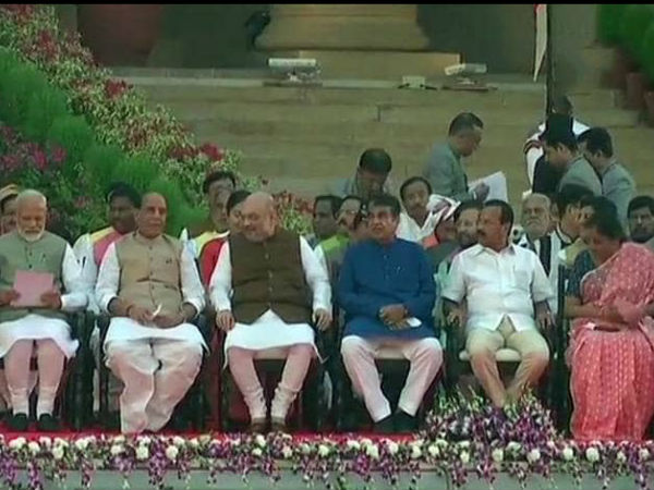 शपथ ग्रहण समारोह की शुरुआत राष्ट्रगान के साथ हुई। जिसमें सबसे पहले प्रधानमंत्री नरेन्द्र मोदी ने शपथ ली, उसके बाद पूर्व सरकार में गृहमंत्री रहे राजनाथ सिंह ने शपथ ली। इसके बाद पिछली सरकार में केंद्रीय गृहमंत्री राजनाथ सिंह ने शपथ लिया। तीसरे नंबर पर अमित शाह ने मंत्री पद की शपथ ली। आपको बता दें कि अमित शाह पहली बार मंत्रिमंडल में शामिल होने जा रहे हैं।
