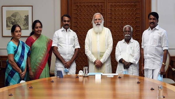 तमिलनाडु बीजेपी अध्यक्ष एल मुरुगन और वहां से पार्टी के चारो विधायकों की प्रधानमंत्री मोदी के अलावा केंद्रीय वित्त मंत्री निर्मला सीतारमण पार्टी के राष्ट्रीय अध्यक्ष जेपी नड्डा और पार्टी के अन्य बड़े नेताओं से भी मुलाकात हुई है।