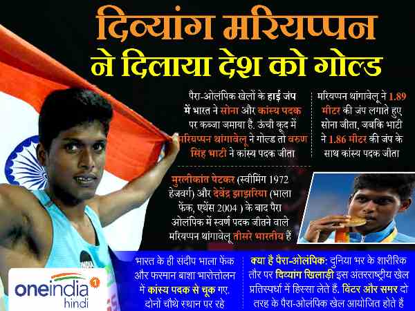 बता दें कि रियो में हो रहे पैरा ओलंपिक में भारत के लिए मरियप्पन थंगवेलु ने पहला गोल्ड जीता है। मरियप्पन ने हाई जंप में गोल्ड मेडल जीता। वहीं वरुण भाटी ने हाई जंप में ही ब्रॉन्ज मेडल जीता है।