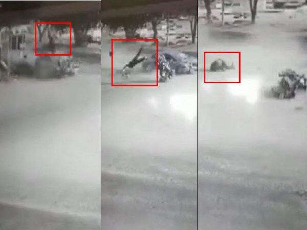 VIDEO: तेज रफ्तार कार ने बाइक को मारी टक्कर, 15 फीट हवा में उड़ा शख्स