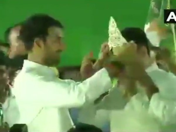 तेज प्रताप ने पहनाया मुकुट, तेजस्वी ने छुए पैर