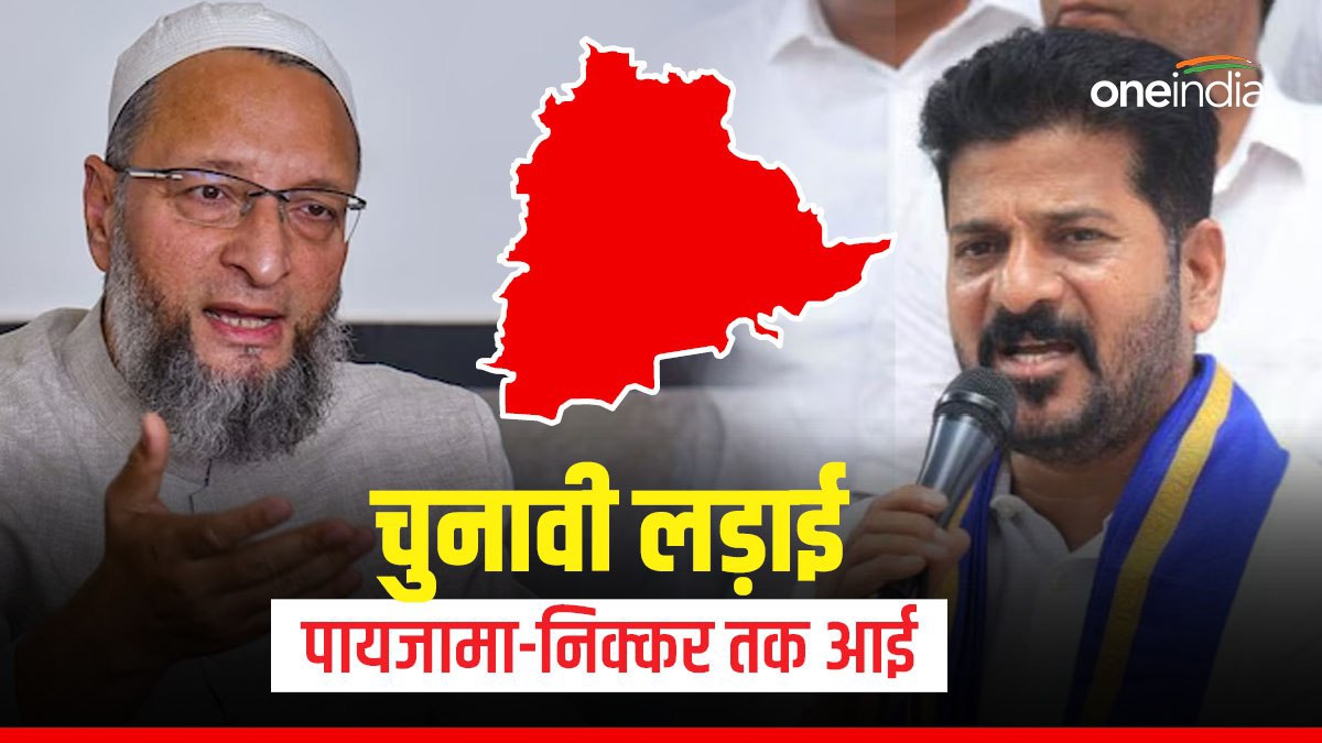 तेलंगाना विधानसभा चुनावों में कांग्रेस और ओवैसी की पार्टी के बीच की लड़ाई पायजामे-निक्कर तक पहुंच चुकी है। राज्य में हैदराबाद के सांसद असदुद्दीन ओवैसी की पार्टी एआईएमआईएम का असर खासकर पुराने शहर में ही दिखता है। लेकिन,राज्य के चुनावी गणित ने कांग्रेस को ओवैसी के खिलाफ आपे से बाहर कर दिया है।