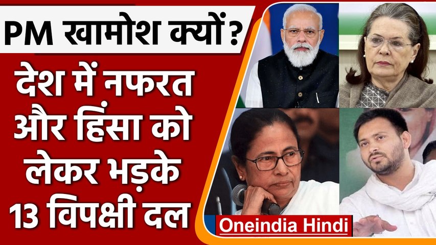 सांप्रदायिक हिंसा की बढ़ती घटनाओं पर संयुक्त बयान जारी करने वाले नेताओं में सोनिया गांधी, शरद पवार, ममता बनर्जी, एमके स्टालिन, हेमंत सोरेन, तेजस्वी यादव शामिल हैं। विपक्षी दलों ने कहा है कि वे 'क्षुब्ध' हैं कि भोजन, आस्था जैसे मुद्दों का इस्तेमाल सत्ता प्रतिष्ठान की ओर से समाज का ध्रुवीकरण करने के लिए किया जा रहा है। इसके साथ-साथ विपक्षी पार्टियों ने हालिया सांप्रदायिक हिंसा की कड़ी निंदा करते हुए कहा कि कट्टरता फैलाने और समाज को भड़काने वालों पर प्रधानमंत्री की चुप्पी को लेकर स्तब्ध हैं।