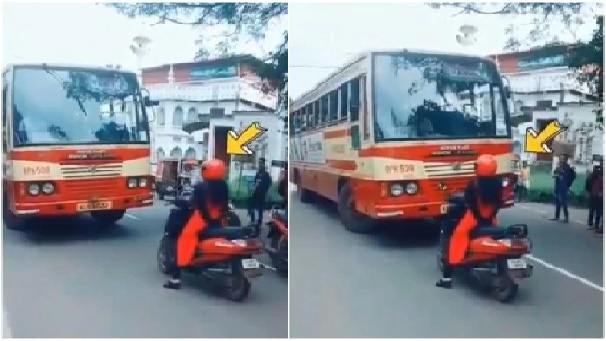 महिला अपनी स्कूटी पर सवार है और बड़ी सी बस के आगे काफी छोटी नजर आ रही है, वह सड़क पर अपनी जगह से बिल्कुल भी नहीं हटती। इसके बाद बस वाले को अपनी गलती का अहसास होता है और वो डर जाता है। फिर वह अपनी बस सीधी लेन में ले आता है।