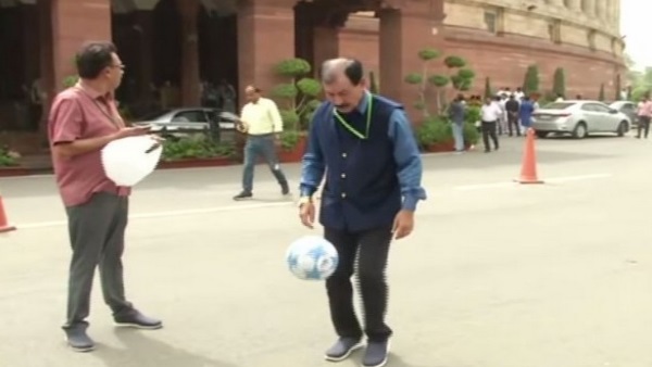 TMC सांसद ने संसद परिसर में खेली फुटबॉल
