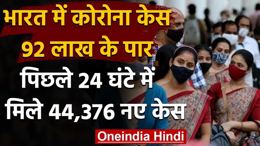 देश में एक दिन के भीतर मिले कोरोना के 44376 नए केस, कुल मामले 92 लाख के पार