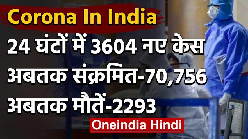 देश में 24 घंटों के भीतर कोरोना के 3,604 नए केस और 87 मौत, कुल मामले 70 हजार से अधिक