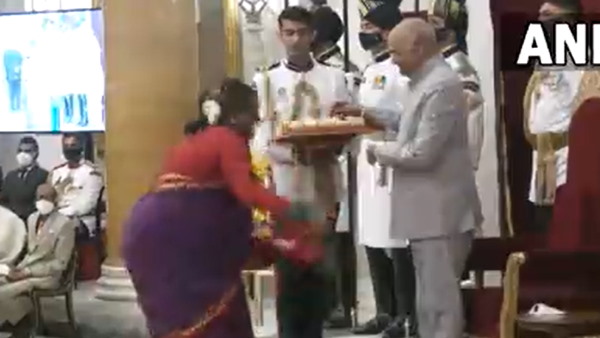 बी मंजम्मा जोगती जब राष्ट्रपति रामनाथ कोविंद से अपना पद्म श्री लेने पहुंची तो उनका अलग ही अंदाज देखने को मिला। पद्म श्री लेने से पहले बी मंजम्मा जोगती ने अपने स्टाइल में राष्ट्रपति रामनाथ कोविंद को दुआएं दी। बी मंजम्मा जोगती के इस अनूठे अंदाज को देखकर दरबार हॉल तालियों के गड़गड़ाहट से गूंज उठा। बी मंजम्मा जोगती का ये वीडियो अब सोशल मीडिया पर वायरल हो रहा है।