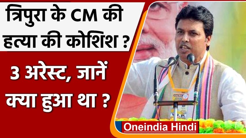 अगरतला, 7 अगस्त: त्रिपुरा में गुरुवार को एक बड़ी घटना हुई थी, जहां एक कार मुख्यमंत्री बिप्लब कुमार देब के सुरक्षा घेरे में घुस गई। बाद में वो कार पैदल सैर कर रहे सीएम के बेहद करीब से गुजरी। इस घटना में सीएम तो बच गए, लेकिन उनके सुरक्षाकर्मी को चोट आई है। मामले की गंभीरता को देखते हुए त्रिपुरा पुलिस ने तीन लोगों को गिरफ्तार किया। साथ ही उनके ऊपर मुख्यमंत्री की हत्या के प्रयास का मुकदमा दर्ज किया गया है।