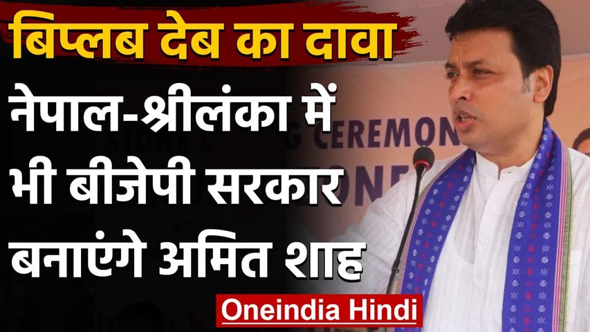 Biplab Deb Says Amit Shah Want BJP Expansion To Nepal, sri Lanka: त्रिपुरा के मुख्यमंत्री बिप्लब कुमार देब अक्सर अपने बयानों को लेकर चर्चा में और विवादों मे रहते हैं। बिप्लब देब इस बार फिर अपने एक बयान को लेकर विवादों में हैं लेकिन इस बार मामला अंतरराष्ट्रीय राजनीति की है। त्रिपुरा सीएम बिप्लब देब ने अगरतला में भारतीय जनता पार्टी (BJP) के कार्यक्रम में कहा है कि बीजेपी सिर्फ देशभर में नहीं बल्कि पड़ोसी देशों में भी पार्टी का विस्तार चाहती है। बिप्लब देब ने कहा, गृह मंत्री अमित शाह की नेपाल और श्रीलंका में भाजपा की सरकार बनाने की योजना है। बिप्लब देब के इस बयान की चर्चा सोशल मीडिया पर हो रही है।