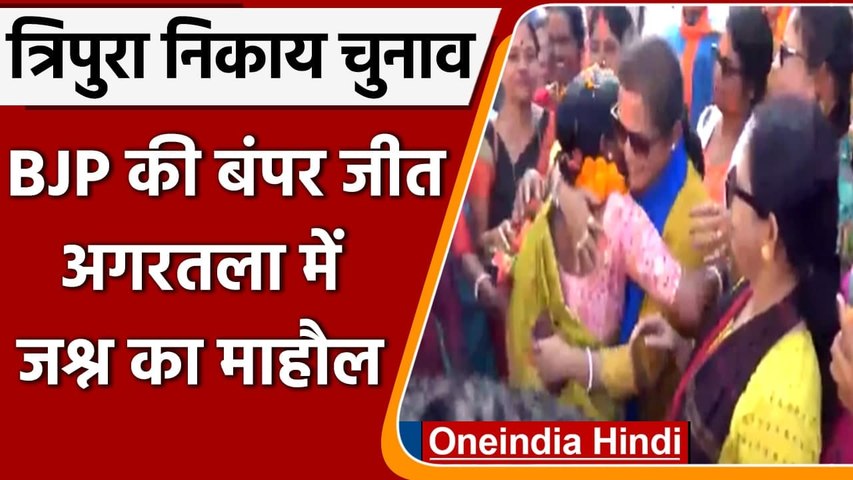 Tripura Municipal Election: Agartala में जीत के बाद BJP ने जश्न मनाया | #Shorts | वनइंडिया हिंदी