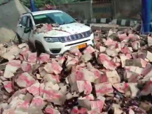VIDEO: टोल प्लाजा से टकराया बीयर से भरा ट्रक, सड़क पर बह गई शराब की नदी