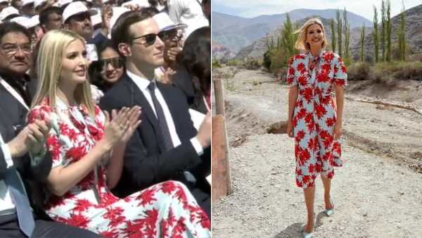 इवांका ब्लू एड रेड फ्लोरल ड्रेस पहने भारत पहुंची हैं। 2019 में अर्जेंटीना में भी ऐसी ड्रेस इवांका पहन चुकी हैं। अर्जेंटीना में इवांका ने बेबी ब्लू विस्कोस जॉर्जट से बनी मिडि ड्रेस पहनी थी जो वी नेक टाई के साथ आती है। ऐसी ही ड्रेस में वो यहां आई हैं। ऐसे में कुछ लोगों ने सोशल मीडिया पर उनकी ड्रेस को पुराना लिख दिया है तो कुछ कह रहे हैं कि क्या उन्हें यही ड्रेस पसंद हैं। इवांका डिजाइनर भी हैं, ऐसे में सोशल मीडिया पर कई लोगों ने ये भी लिखा है कि वो खुद डिजाइनर होकर भी पुरानी ड्रेस क्यों पहन रही हैं।