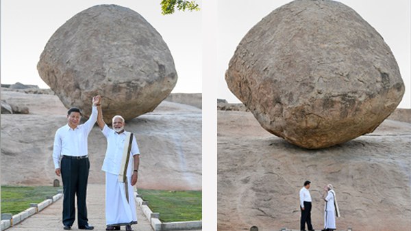 नई दिल्ली। भारत और चीन के बीच रिश्तों को और प्रगाढ़ बनाने के लिए दोनों ही देश लगातार कोशिशों में जुटे हुए हैं। इसी बीच चीन के राष्ट्रपति शी जिनपिंग भारत के दौरे पर पहुंचे, जहां प्रधानमंत्री नरेंद्र मोदी ने उनकी भव्य अगवानी की। एशिया के दो बड़े देशों के दोनों राष्ट्राध्यक्षों की ये मुलाकात तमिलनाडु के ममल्लापुरम हुई। ये वही जगह है जिसे महाबलीपुरम के नाम से भी जाना जाता है। प्रधानमंत्री नरेंद्र मोदी ने न केवल चीन के राष्ट्रपति का भव्य स्वागत किया, बल्कि उन्हें यहां मौजूद हैरिटेज साइट्स को भी खुद दिखाने के लिए ले गए। इसी दौरान दोनों नेताओं की एक तस्वीर सोशल मीडिया पर काफी तेजी से वायरल होने लगी। जिस तस्वीर ने सुर्खियां बटोरीं उसमें पीएम मोदी और शी जिनपिंग एक बड़े सा पत्थर के सामने खड़े नजर रहे हैं। दोनों राष्ट्राध्यक्षों ने अपने हाथ उठा रखे हैं और उनके बिल्कुल पीछे ये बड़ा सा पत्थर नजर आ रहा है। इस बड़े भारी पत्थर को गौर से देखें तो ये बेहद खतरनाक तरीके से आगे की ओर झुका हुआ भी नजर आ रहा है। आपको जानकर हैरानी होगी कि सोशल मीडिया पर छा जाने वाला ये पत्थर को साधारण पत्थर नहीं है बल्कि ये एक ऐतिहासिक पत्थर है। इस पत्थर से जुड़ी कई खूबियां हैं जिनके बारे में शायद ही आपको पता होगा, तो चलिए आपको बताते हैं इस ऐतिहासिक पत्थर से जुड़े खास रहस्य...