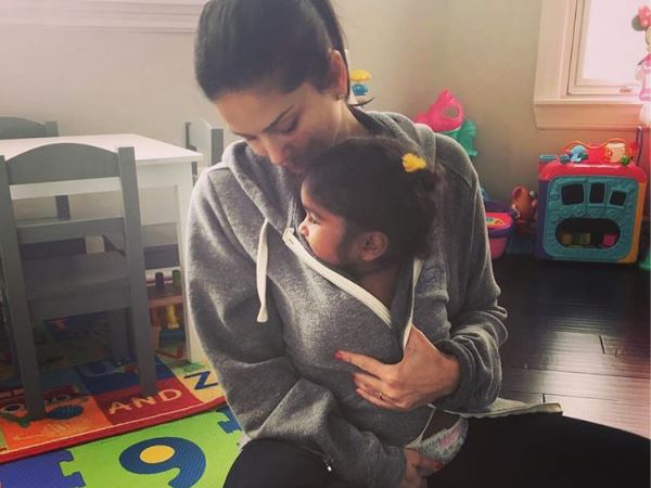 बेटी को सीने से लगा शेयर की फोटो