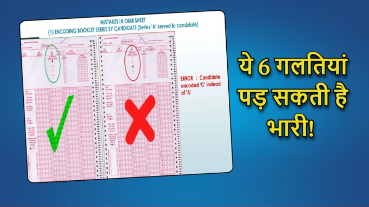- बुकलेट सीरीज: ओएमआर शीट में टेस्ट बुकलेट सीरीज का सही अंक फिल करना होगा। अगर टेस्ट बुकलेट सीरीज ए मिलती है, तो उसमें उसी को लिखना होगा। साथ ही संबंधित गोले को भी भरना होगा। गलती हुई तो शीट रिजेक्ट हो सकती है।