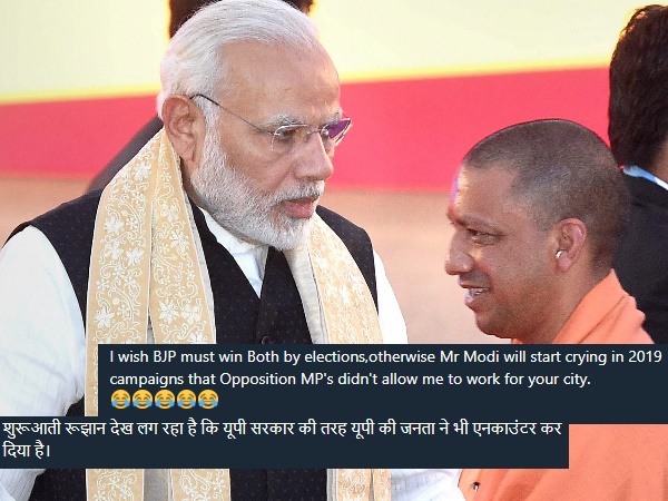 एक यूजर को भाजपा के हारने की सबसे ज्यादा खुशी हुई। यूजर ने लिखा कि, 'फूलपुर और गोरखरपुर के लोगों को भाजपा को हराने पर बधाई। मैं नरेंद्र मोदी का समर्थक हूं लेकिन ये सरकार भटक गई है।'
