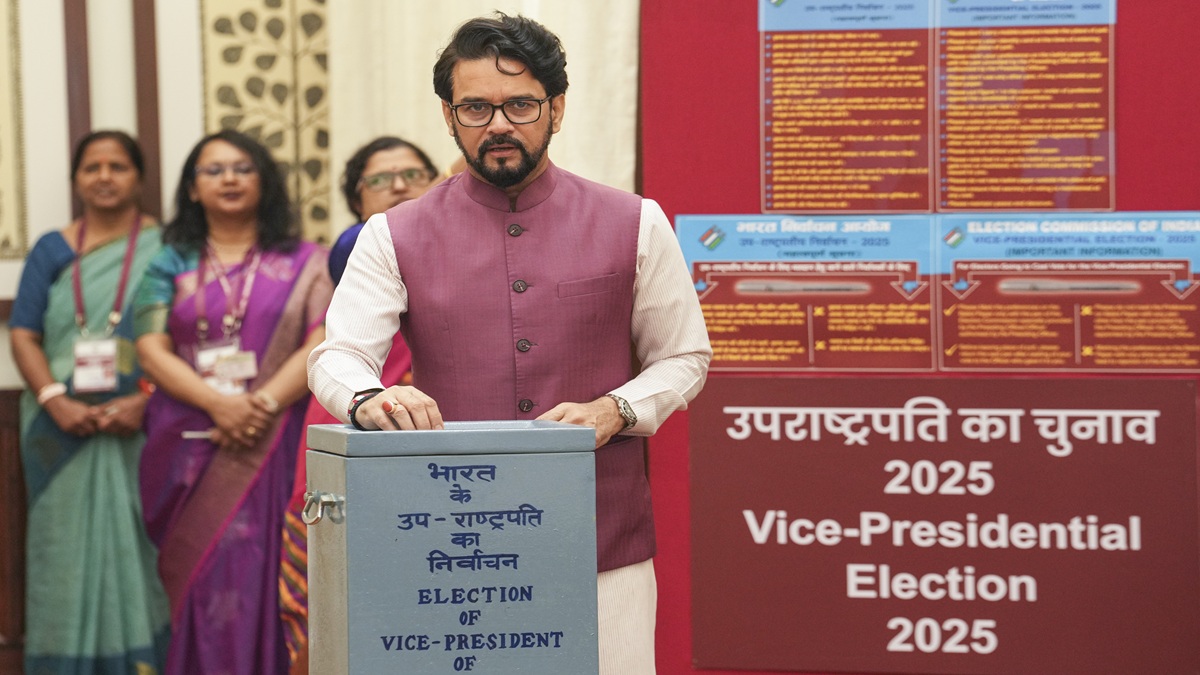 Vice President Election: उपराष्ट्रपति चुनाव के लिए वोटिंग चल रही है और आंकड़ों को देखते हुए एनडीए उम्मीदवार सीपी राधाकृष्णन की जीत तय है। एक दिन पहले शिवसेना (यूबीटी) सांसद संजय राउत ने दावा किया था कि एनडीए के सांसद भी बी. सुदर्शन रेड्डी को वोट करेंगे। अब बीजेपी सांसद अनुराग ठाकुर ने दावा किया है कि इंडिया गठबंधन के कई सांसद एनडीए उम्मीदवार को वोट कर रहे हैं। उनके बयान ने राजनीतिक अटकलों का दौर तेज कर दिया है। उन्होंने कहा कि विपक्षी दल जिस अंतरात्मा की आवाज की बात करते हैं उसके आधार पर कुछ सांसद हमारे उम्मीदवार को वोट करेंगे।