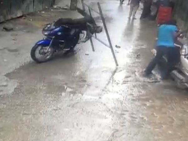 बेंगलुरू के संकलपेट क्षेत्र में एक बाइकसवार के ऊपर लोहे का फ्रेम गिर गया। बाइकसवार चंदन अपनी बाइक से गुजर रहा था जब एक निर्माणधीन बिल्डिंग से लोहे का फ्रेम उसके ऊपर गिर गया। लोहे का फ्रेम बिल्डिंग के चौथे माले से चंदन के सिर पर गिरा। फ्रेम गिरते ही चंदन की बाइक का बैलेंस बिगड़ा और वो तुरंत सड़क पर गिर गया।