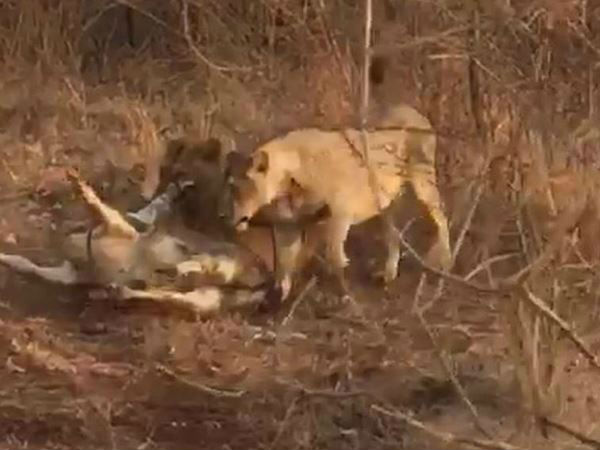 टाइम्स ऑफ इंडिया की रिपोर्ट के मुताबिक मामला गुजरात के गिरनार सैंक्चुअरी पार्क का बताया जा रहा है, हालांकि इसकी अभी आधिकारिक पुष्टि नहीं हुई है। वीडियो में देखा जा रहा है कि एक गाय पेड़ से बंधी हुई है और तीन शेरनी उसकी मौत बनकर उसके करीब आ रही है। तीन शेरनियां मिलकर गाय पर टूट पड़ती हैं और मिनटों में उसका शिकार कर उसे मार डालती हैं। वीडियो में किसी शख्स की आवाज भी सुनाई देती है जो कहता है कि उसके पास मत जाओ वो चारे को दूर लेकर जाएगी।