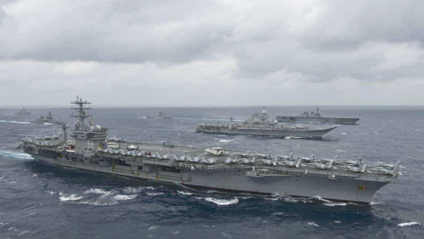 मुंबई। बंगाल की खाड़ी में 3 नवंबर से जारी क्वाड देशों की नौसेनाओं का युद्धाभ्यास मालाबार शुक्रवार को खत्म हो गया है। यह पहला मौका था जब इंडियन नेवी के साथ अमेरिका, ऑस्ट्रेलिया और जापान की नौसेनाओं ने एक साथ अभ्यास किया है। कोविड-19 के निर्देशों के तहत इस युद्धाभ्यास को जीरो कॉन्टैक्ट के फॉरमेट में ही आयोजित किया गया था। ऑस्ट्रेलिया ने पहली बार इस युद्धाभ्यास में हिस्सा लिया था। अब इस युद्धाभ्यास का दूसरा चरण 17 नवंबर से 20 नवंबर तक आयोजित होगा।