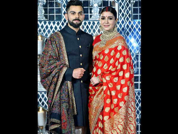 विराट ने ब्लैक कलर की शेरवानी पर प्रिंटेड शॉल ले रखा था जो उनके लुक को अनुष्का के ड्रेसअप के साथ कंप्लीट कर रहा था। बता दें कि रिसेप्शन की फोटोज सामने आने के बाद सब्यसाची ने अपने सेाशल मीडिया अकाउंट पर सेलिब्रेटी कपल की ड्रेस की फोटोज शेयर की।
