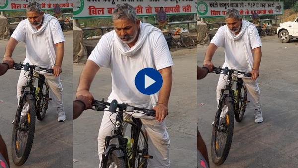 साइकिल चलाते नजर आए राकेश टिकैत, बोले- मोदीजी अब तो सड़कें भी अपना घर लगने लगी हैं VIDEO