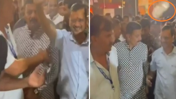 गुजरात के राजकोट में एक गरबा स्थल पर अरविंद केजरीवाल पर पानी की बोतल फेंके जाने का एक वीडियो भी सामने आया है। यह घटना खोडलधाम मंदिर के गरबा स्थल पर उस समय हुई जब अरविंद केजरीवाल शनिवार रात अपनी पार्टी के कार्यकर्ताओं से बात करने और लोगों को अभिवादन करने में कर रहे थे।
